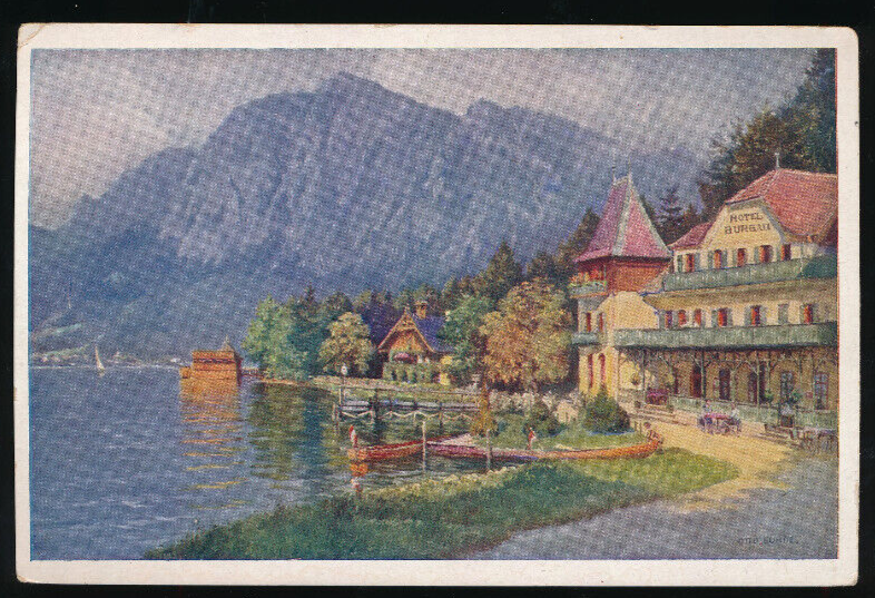 AK am Attersee mit Hotel und Pension Burgau Oberösterreich (1739)