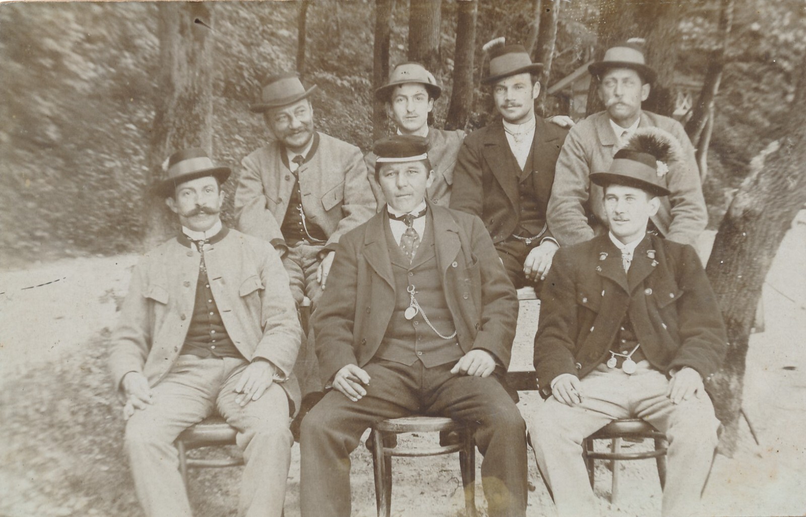 AK Annodazumals Männergruppenfoto mit Hut und Gamsbart (7833)