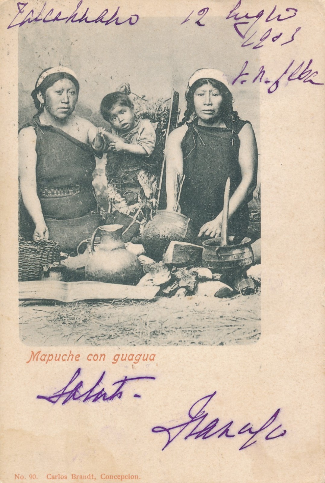 AK Annodazumals Mapuche con guagua zwei Frauen mit Kind Ansichtskarte (15749)