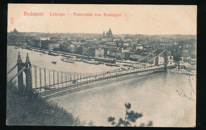 AK aus Budapest Panorama mit Brücke Ungarn (740)