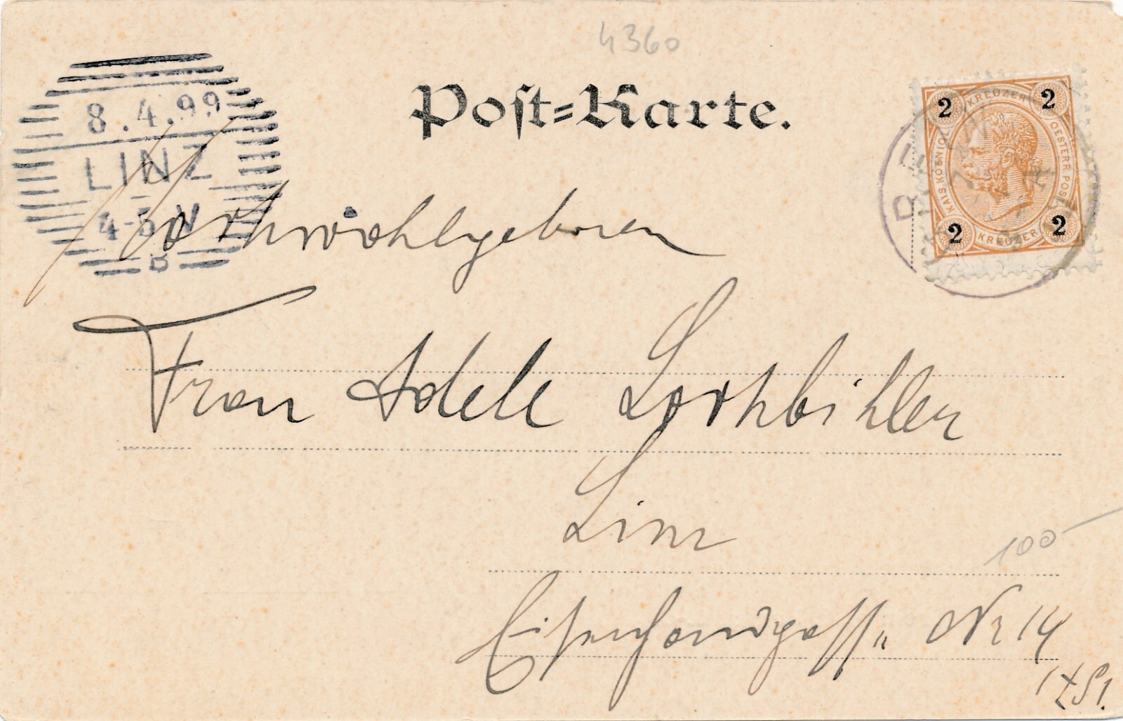 5 Kreuzer - Ganzsachen - Karte 1893 aus Marienbad (12318)