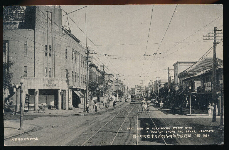AK aus Hakodate view of Suehirocho street with a row of shops Japan (4552)