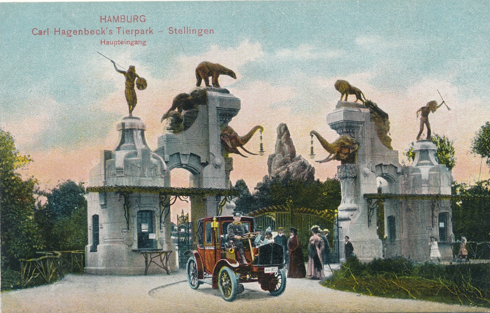 AK aus Hamburg Carl Hagenbeck Tierpark mit Oldtimer Ansichtskarte (14567)
