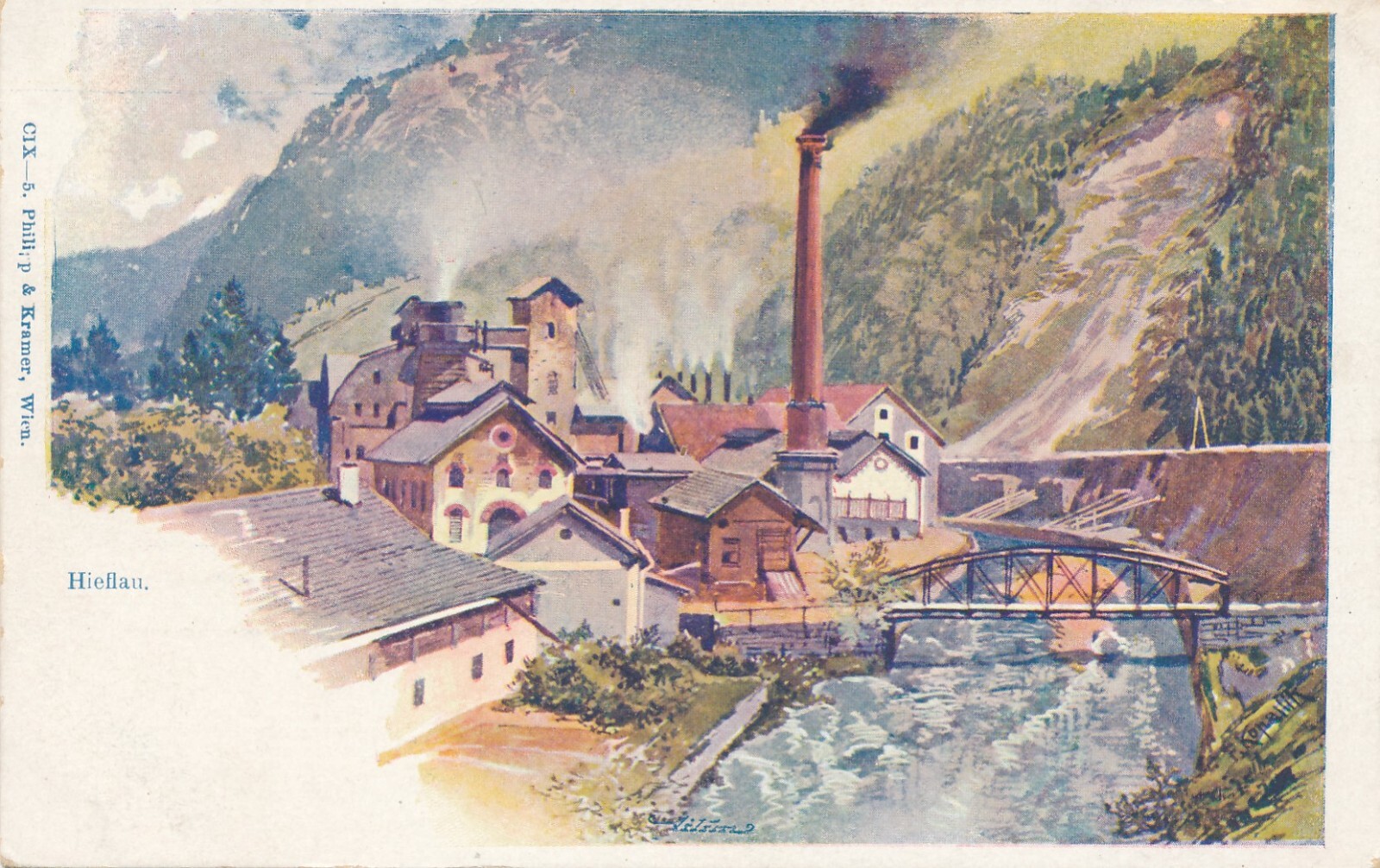AK aus Hieflau mit Fabrik Steiermark Ansichtskarte (14187)