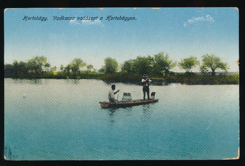 AK aus Hortobagy Jäger am Bot mit Flinte und Hund mit Ungarn (4243)