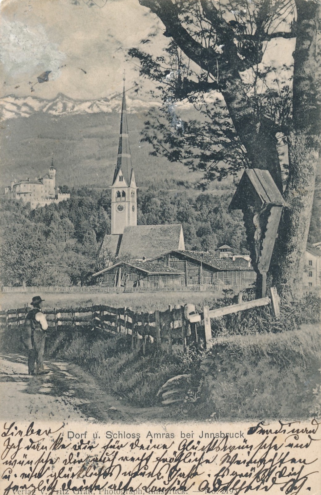 AK aus Innsbruck Dorf und Schloss Amras Ansichtskarte (14681)