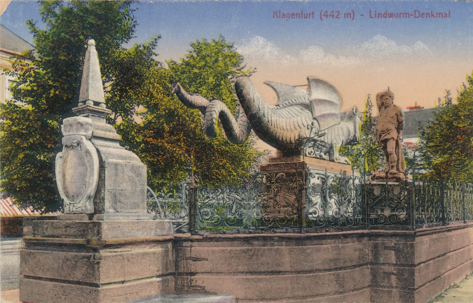 AK aus Klagenfurt mit Lindwurm Denkmal Kärnten (10465)
