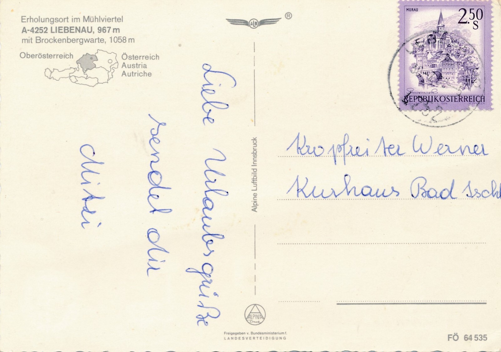 AK aus Liebenau Oberösterreich Fliegerfoto Ansichtskarte (J336)
