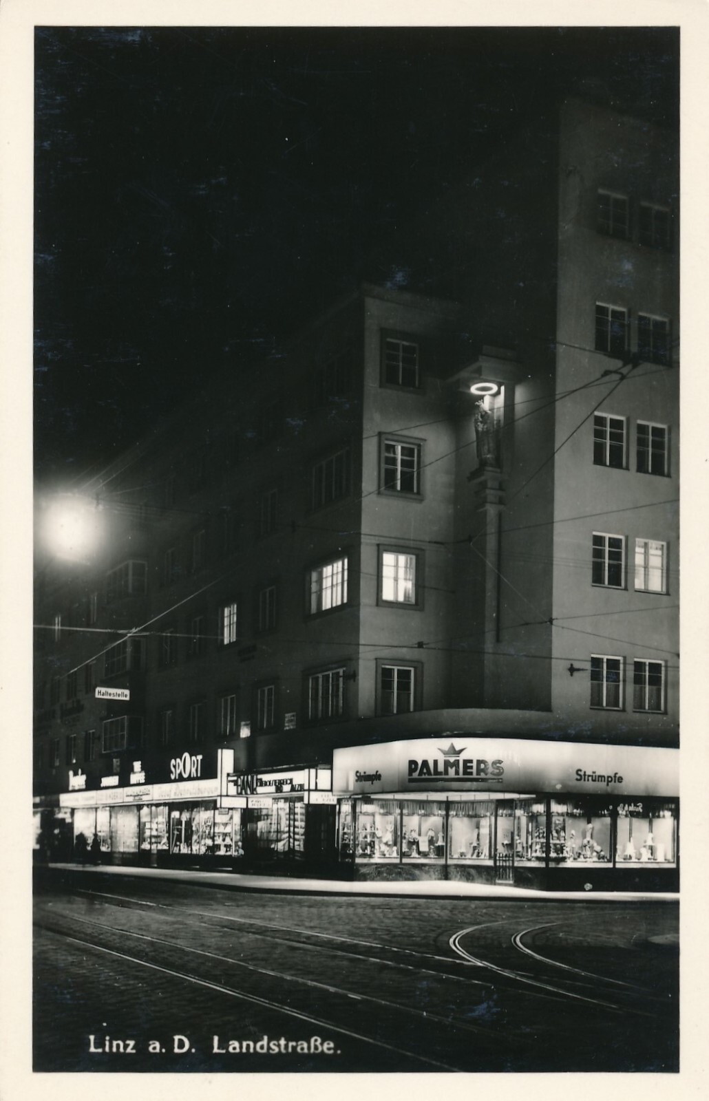 AK aus Linz an der Donau bei Nacht Landstr. Oberösterreich Ansichtskarte (10293)