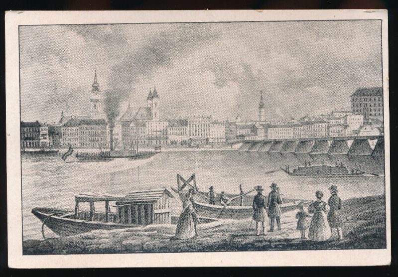 AK aus Linz an der Donau mit Holzbrücke im 19 Jhrd Oberösterreich (2561)