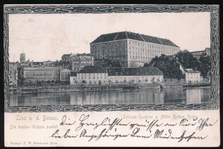 AK aus Linz an der Donau mit Schloss Kaserne und Hotel Oberösterreich (1999)