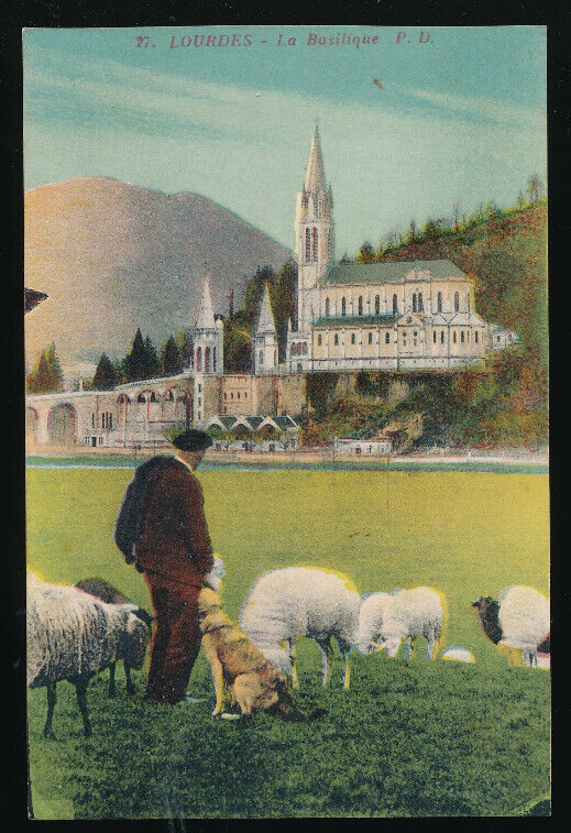 AK aus Lourdes Mann mit Schafen und Hund Bauernleben (3434)