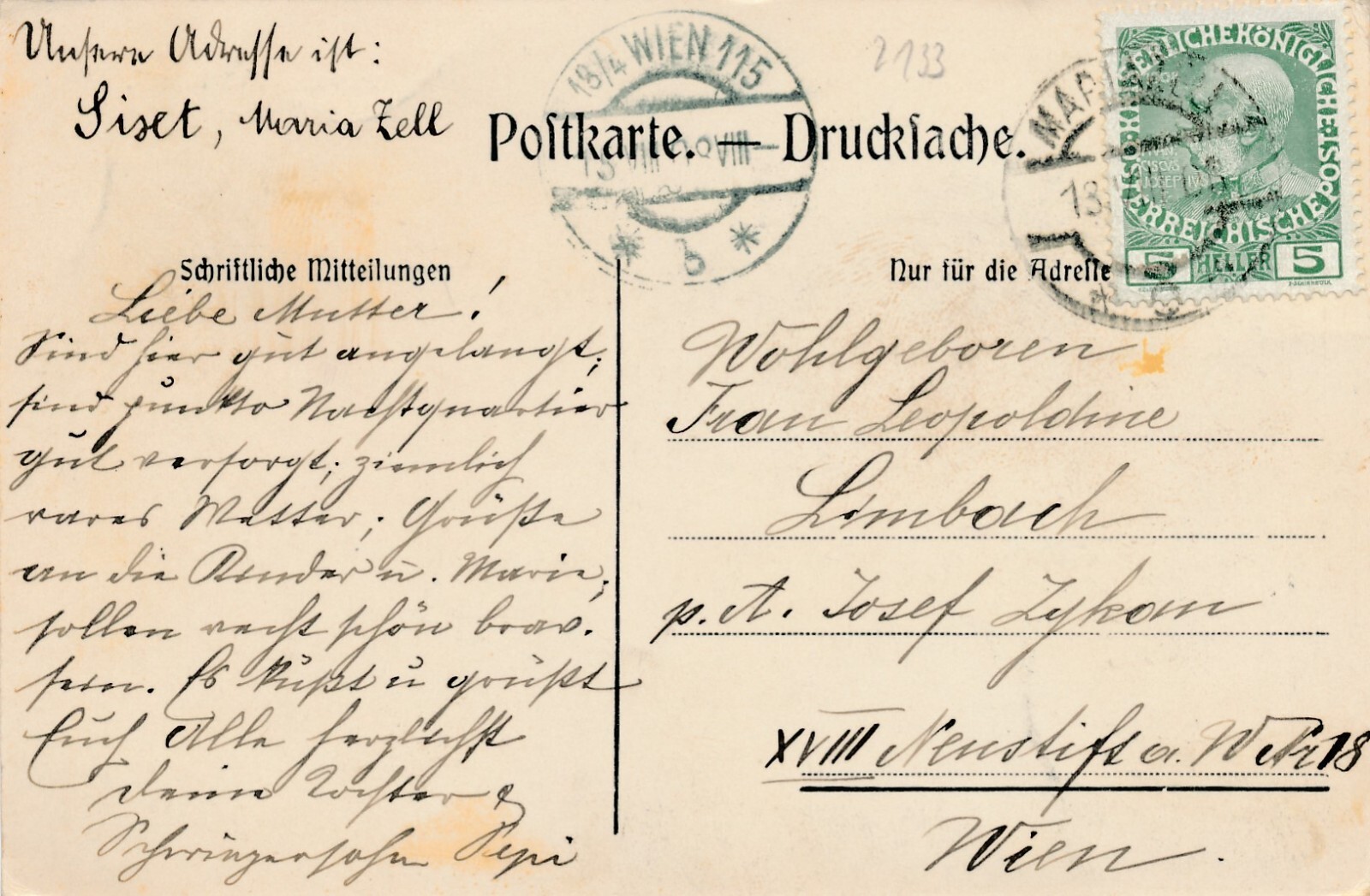 2 Kreuzer - Ganzsachen - Karte 1874 aus Laun (13579)