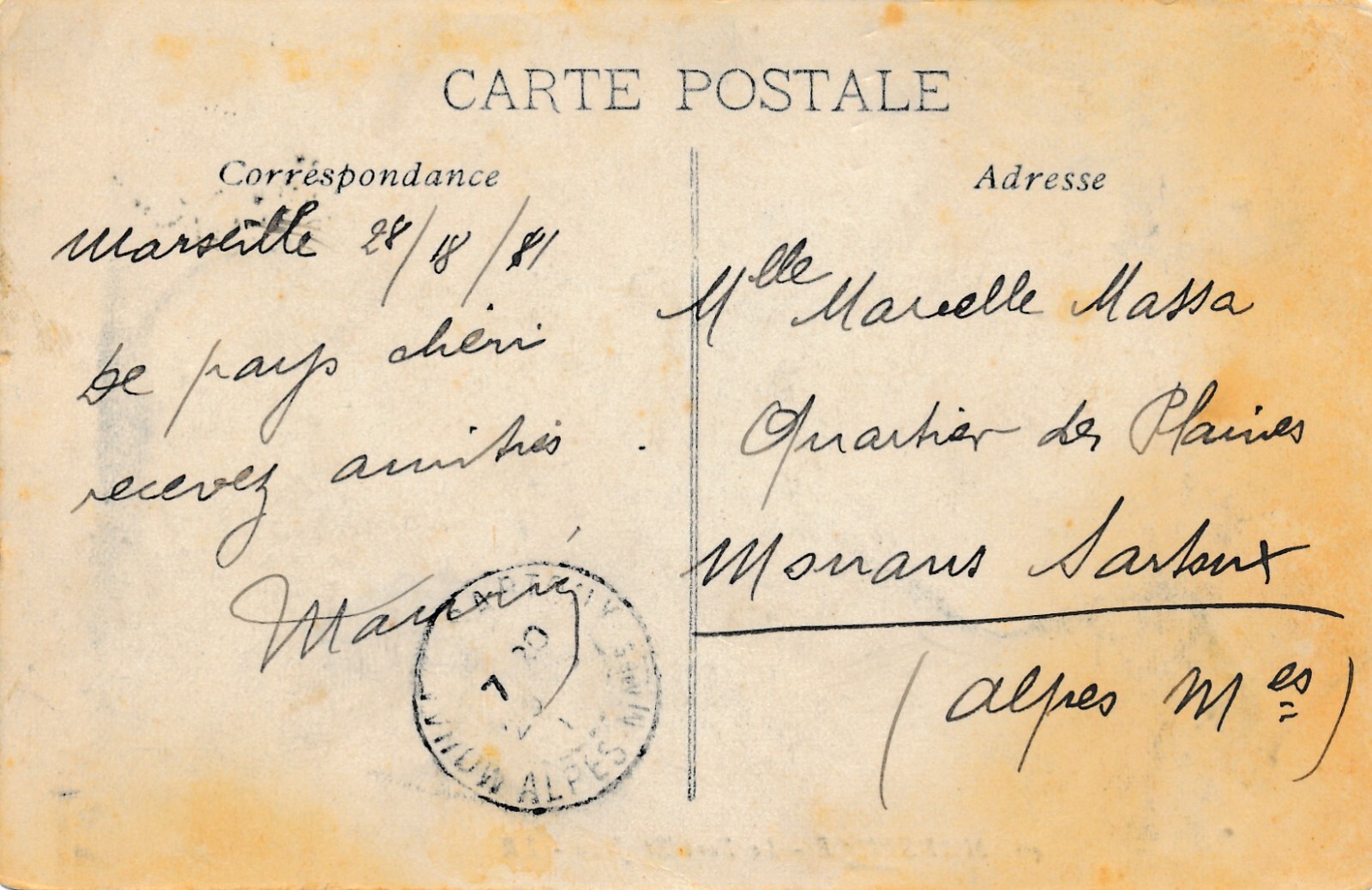 AK aus Marseille Frankreich Ansichtskarte (8625)