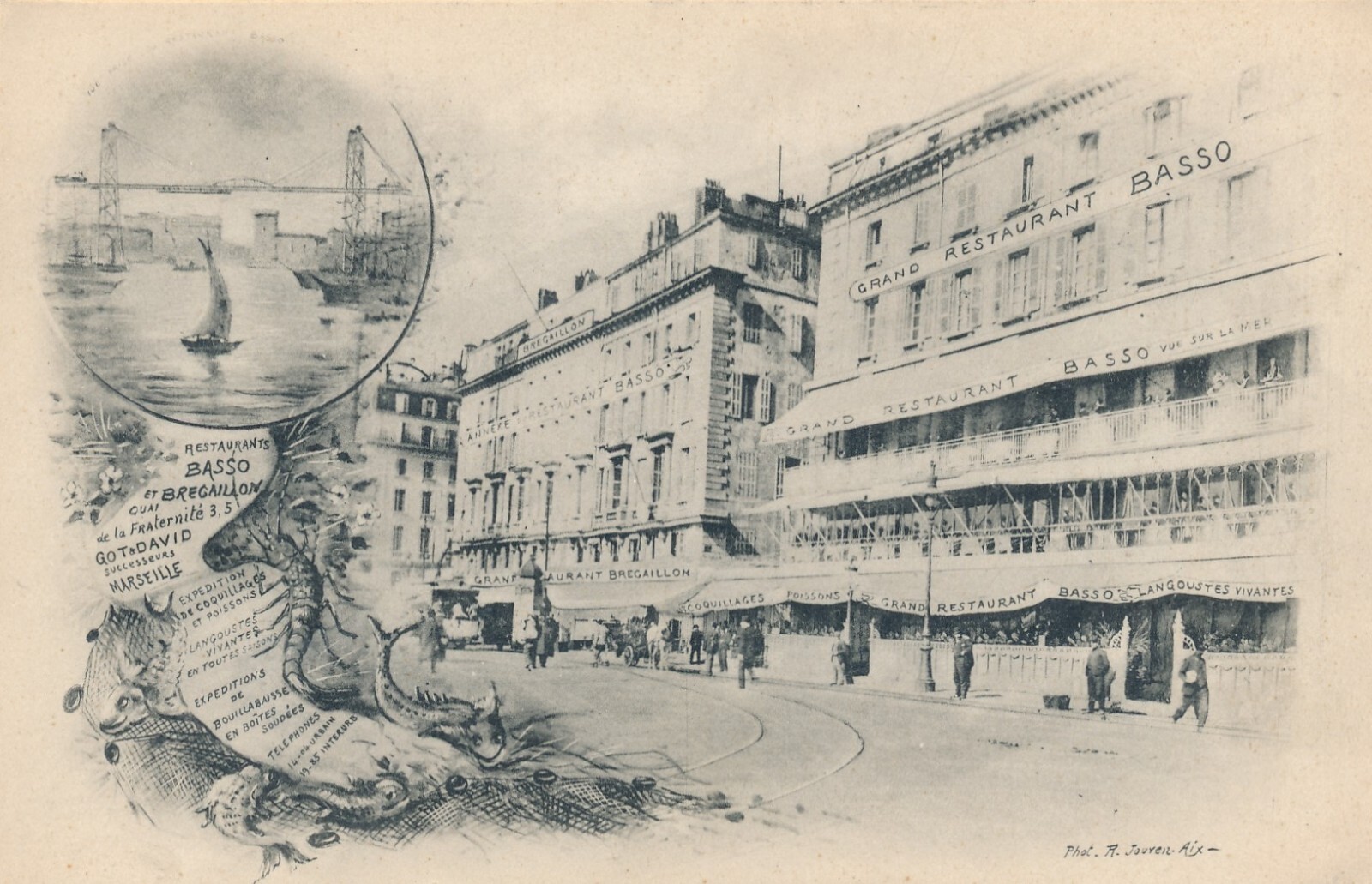 AK aus Marseille mit Grand Restaurant Basso Italien Ansichtskarte (8765)
