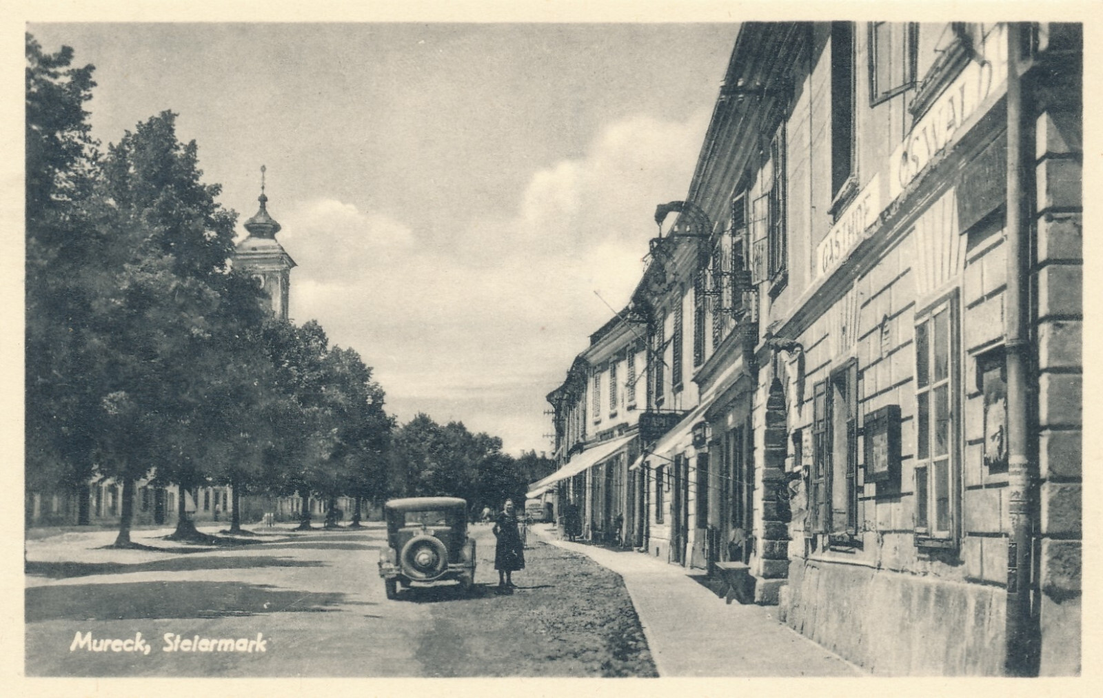 AK aus Mureck Strassenansicht mit Oldtimer Stmk (6354)