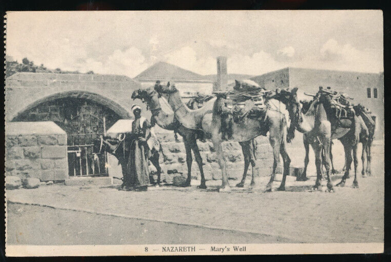 AK aus Nazareth Mary´s Well Mann mit Kamelen Israel (816)