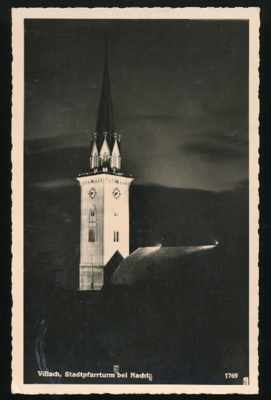 AK aus Villach Stadtpfarrturm bei Nacht Kärnten (3589)
