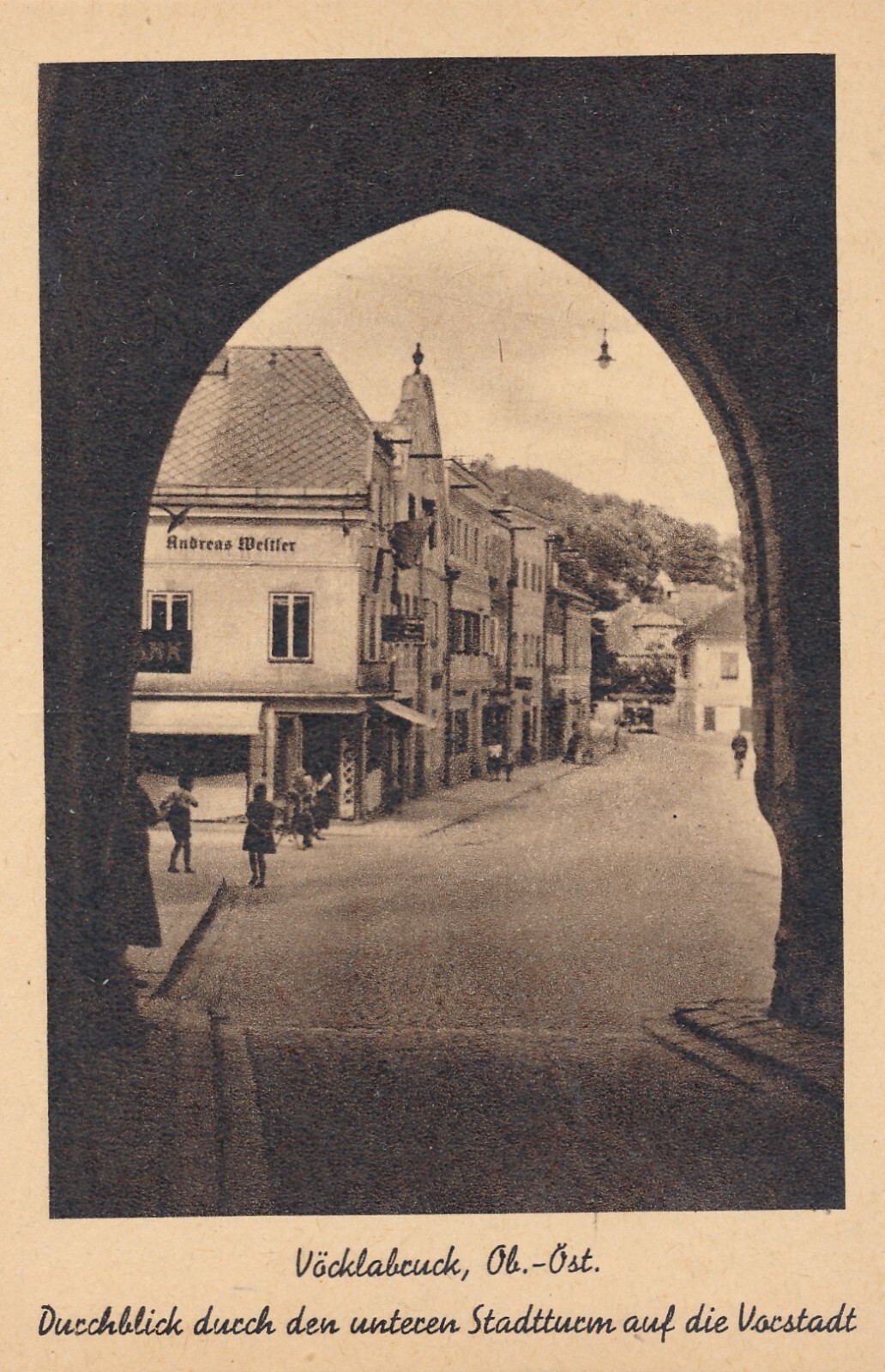 AK aus Vöcklabruck mit durchblick durch den Stadtturm Oberösterreich (7986)