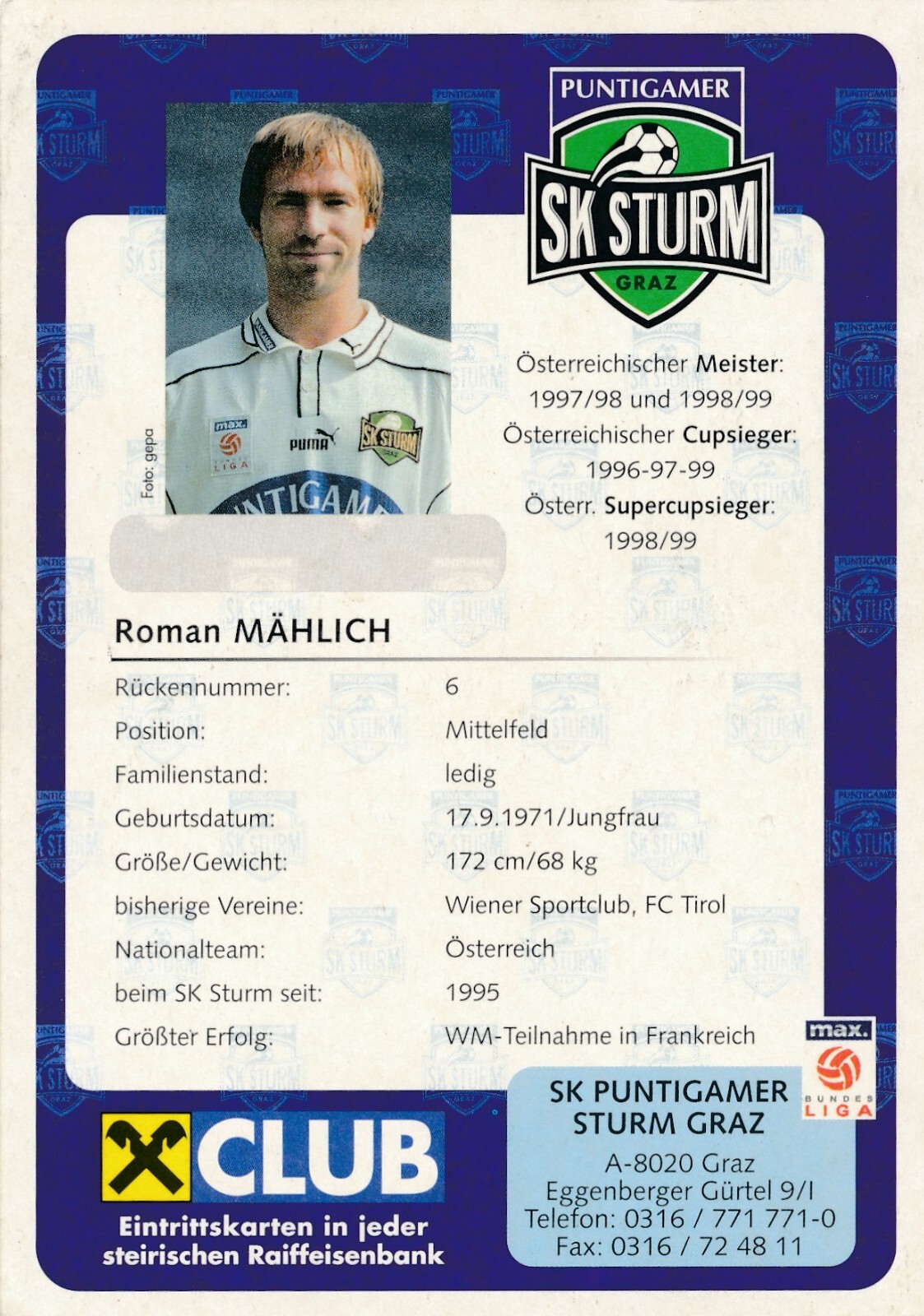 AK, Autogramm-Karte, Roman Mählich, SK Sturm (S1624)