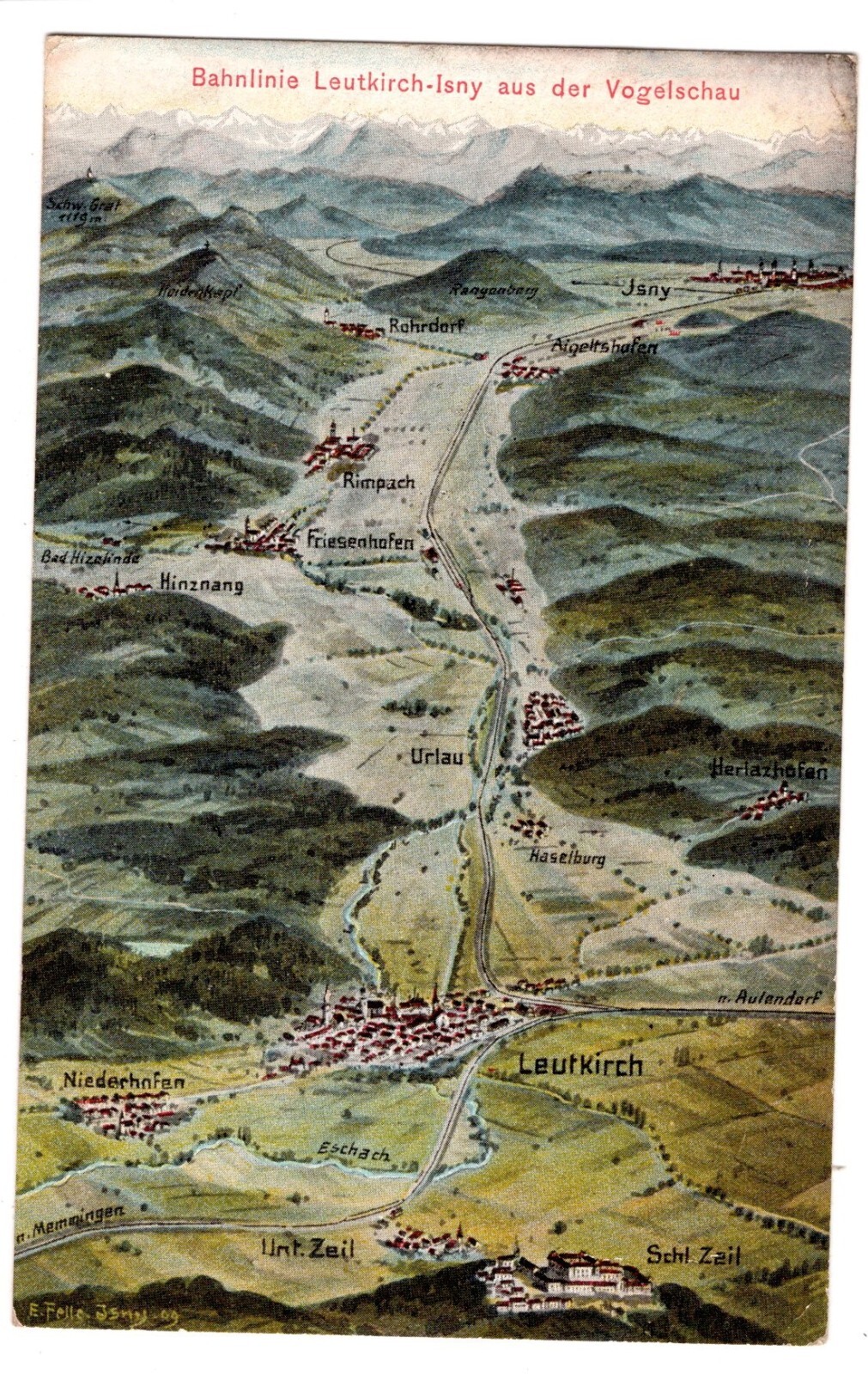AK, Bahnlinie Leutkirch-Isny aus der Vogelschau, Ansichtskarte (S5573)