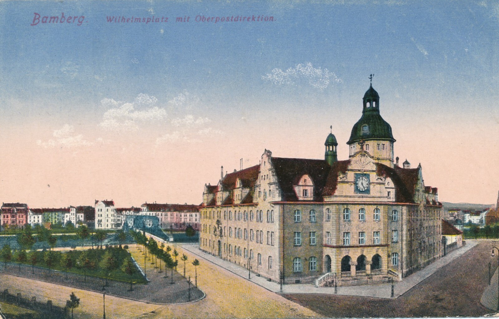 AK, Bamberg, Wilhelmsplatz mit Oberpostdirektion, Bayern (S1428)