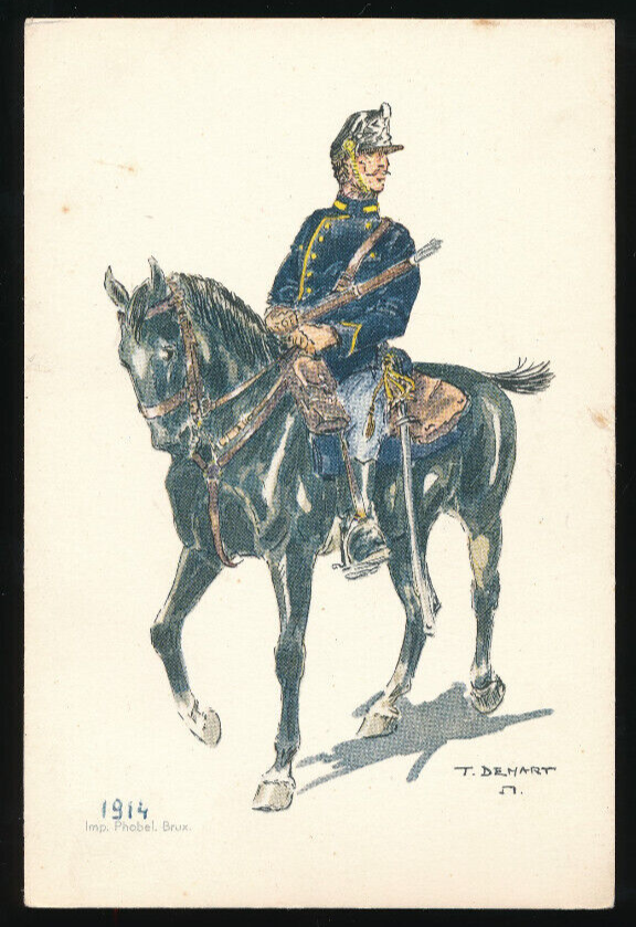 AK Belgische Militäruniformen Chasseurs a Cheval -1914- (1026)