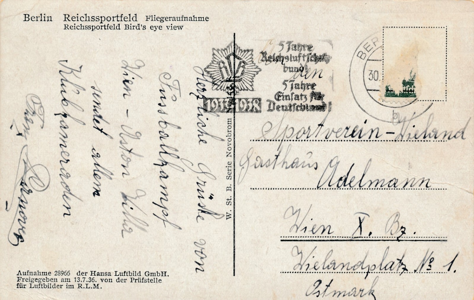 AK, Berlin, Reichssportfeld Fliegeraufnahme (S605)