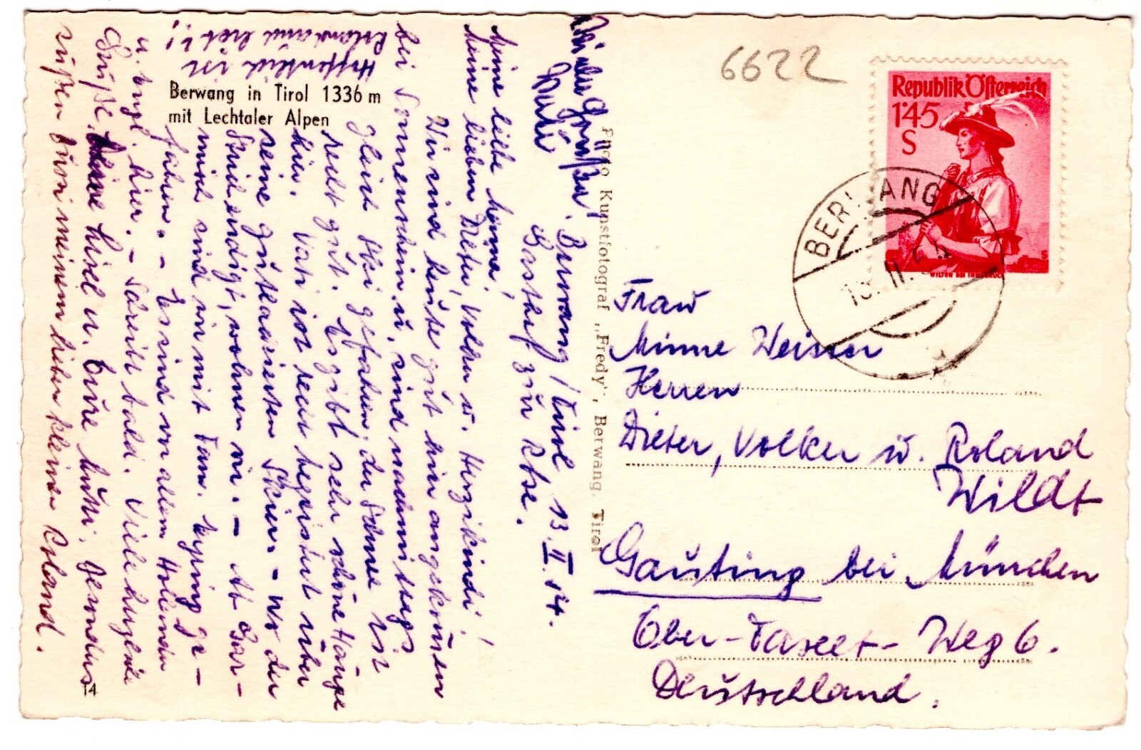 AK, Berwang in Tirol mit Lechtaler Alpen, Ansichtskarte (S6961)