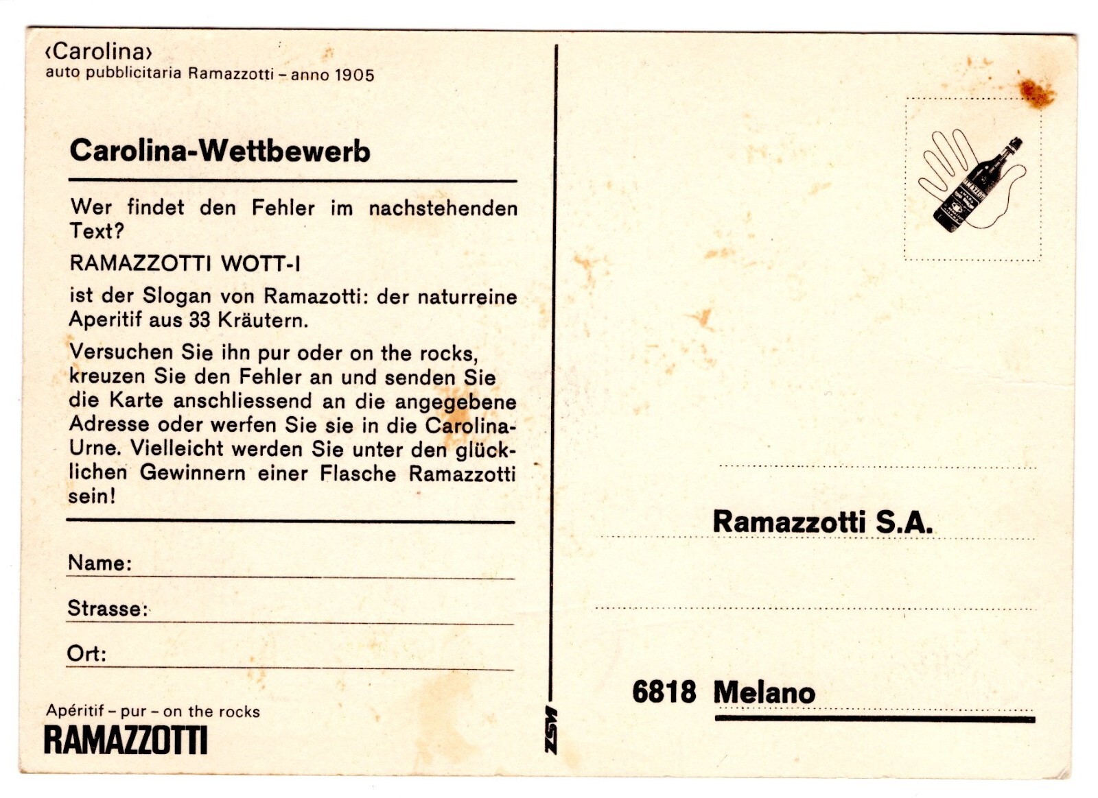 AK, Carolina Wettbewerb, Ramazzotti, Ansichtskarte (S5779)