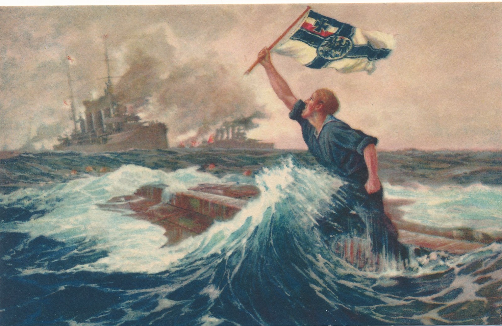 AK der letzte Mann Soldat mit Flagge Ansichtskarte (16951)