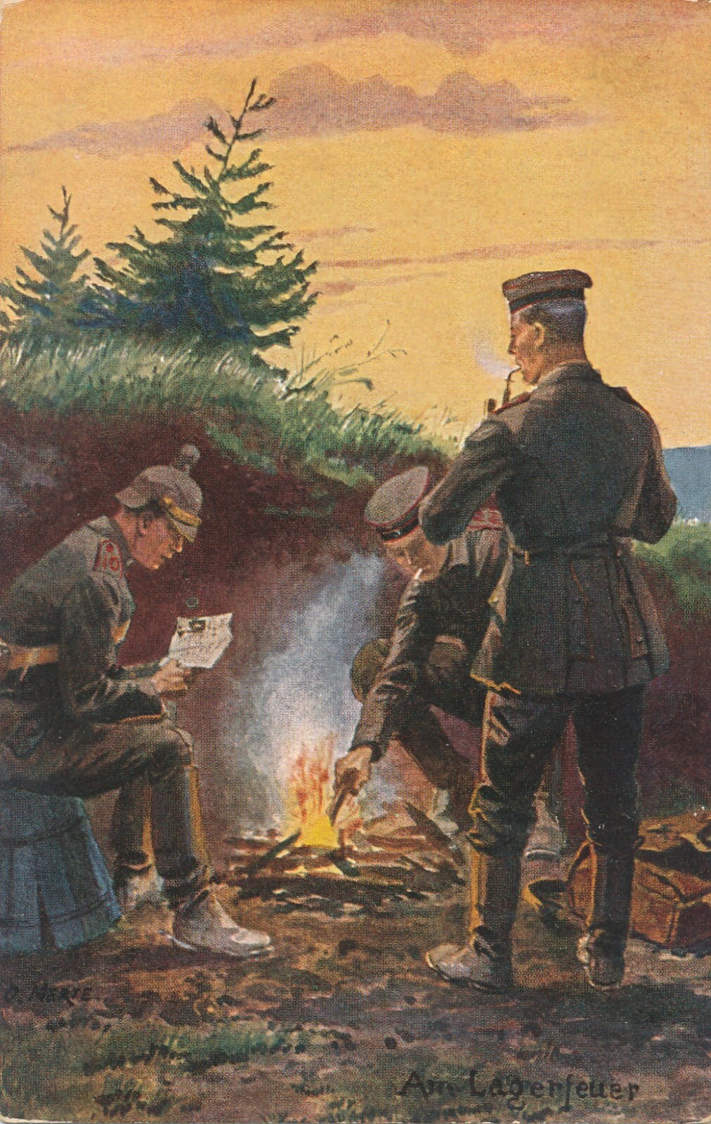 AK drei Soldaten vor dem Lagerfeuer (7925)