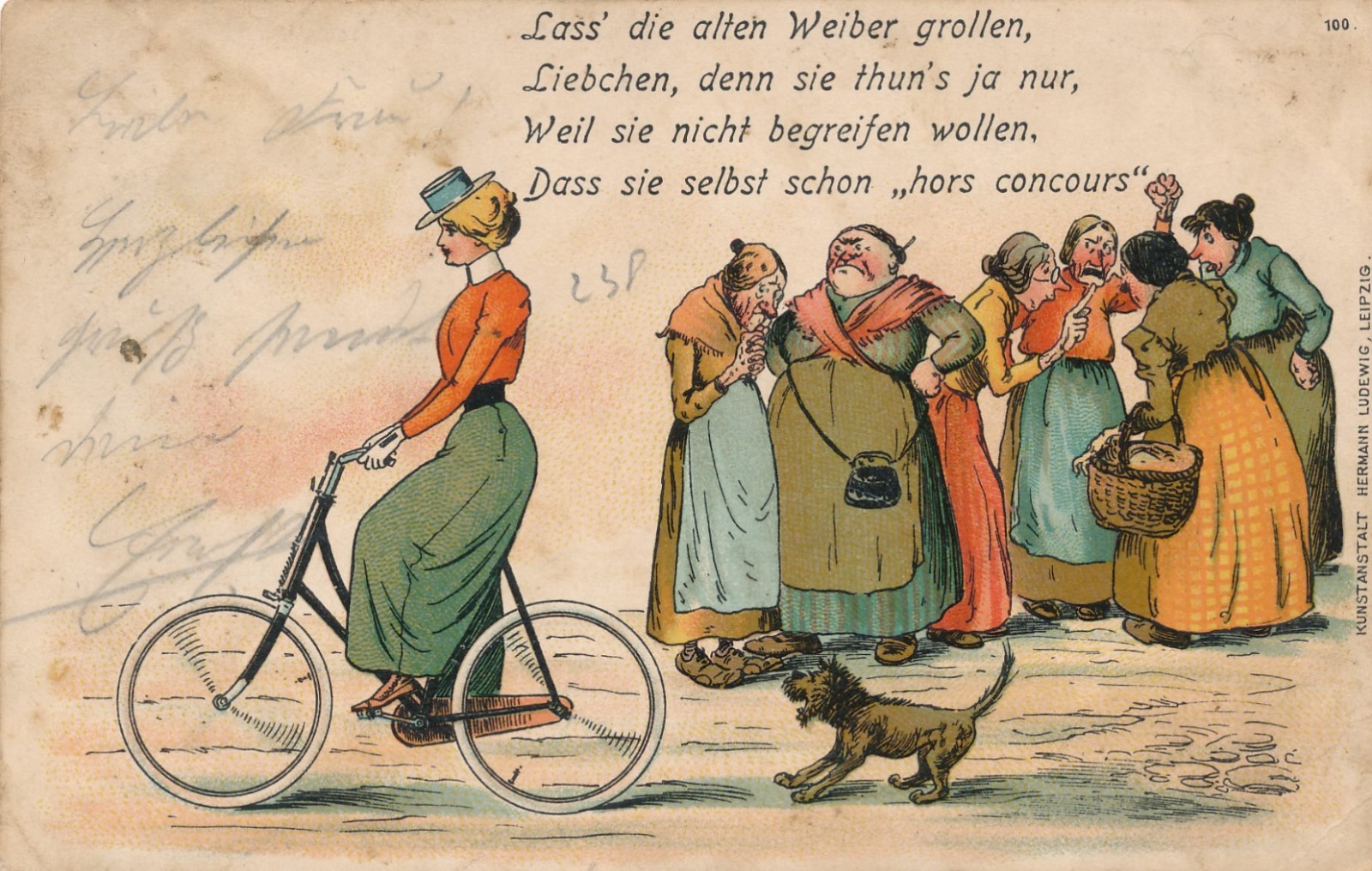 AK Frau mit Fahrad Ansichtskarte (15875)
