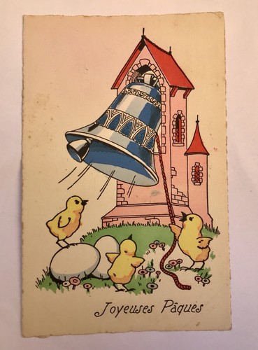 AK, Frohe Ostern, Joyeuses Paques, Kücken, Kirchturm, Glocke (40001 BW)