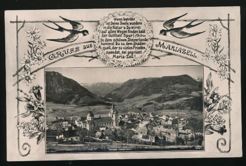 AK gruß aus Mariazell mit Schwalben Steiermark (3732)