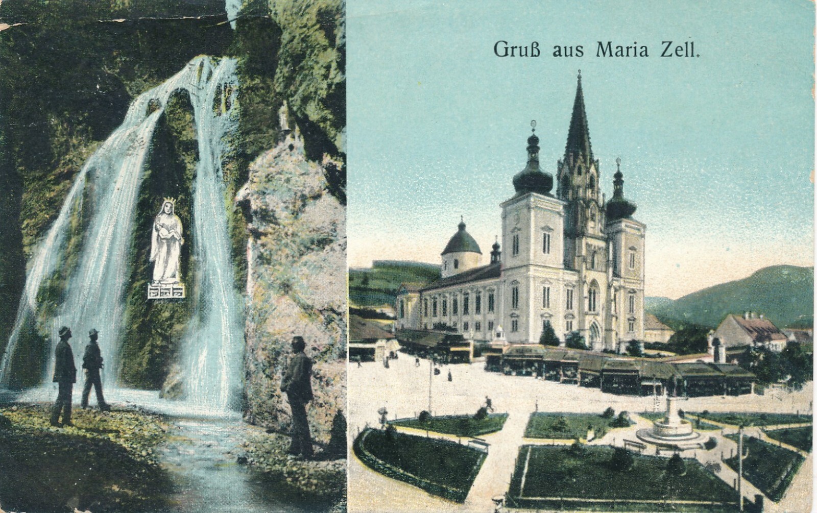 AK gruß aus Mariazell mit Wasserfall Steiermark Ansichtskarte (13940)