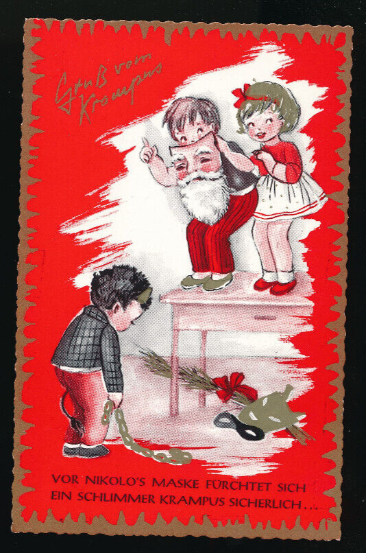 AK gruss vom Krampus vor Nikolos Maske fürchtet sich (5572)