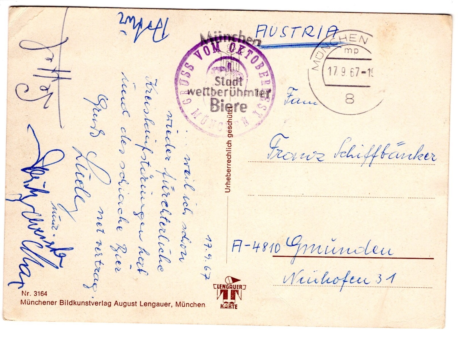 AK, Gruß vom Oktoberfest, Leckts mi doch ins Bett, Ansichtskarte (S4685)