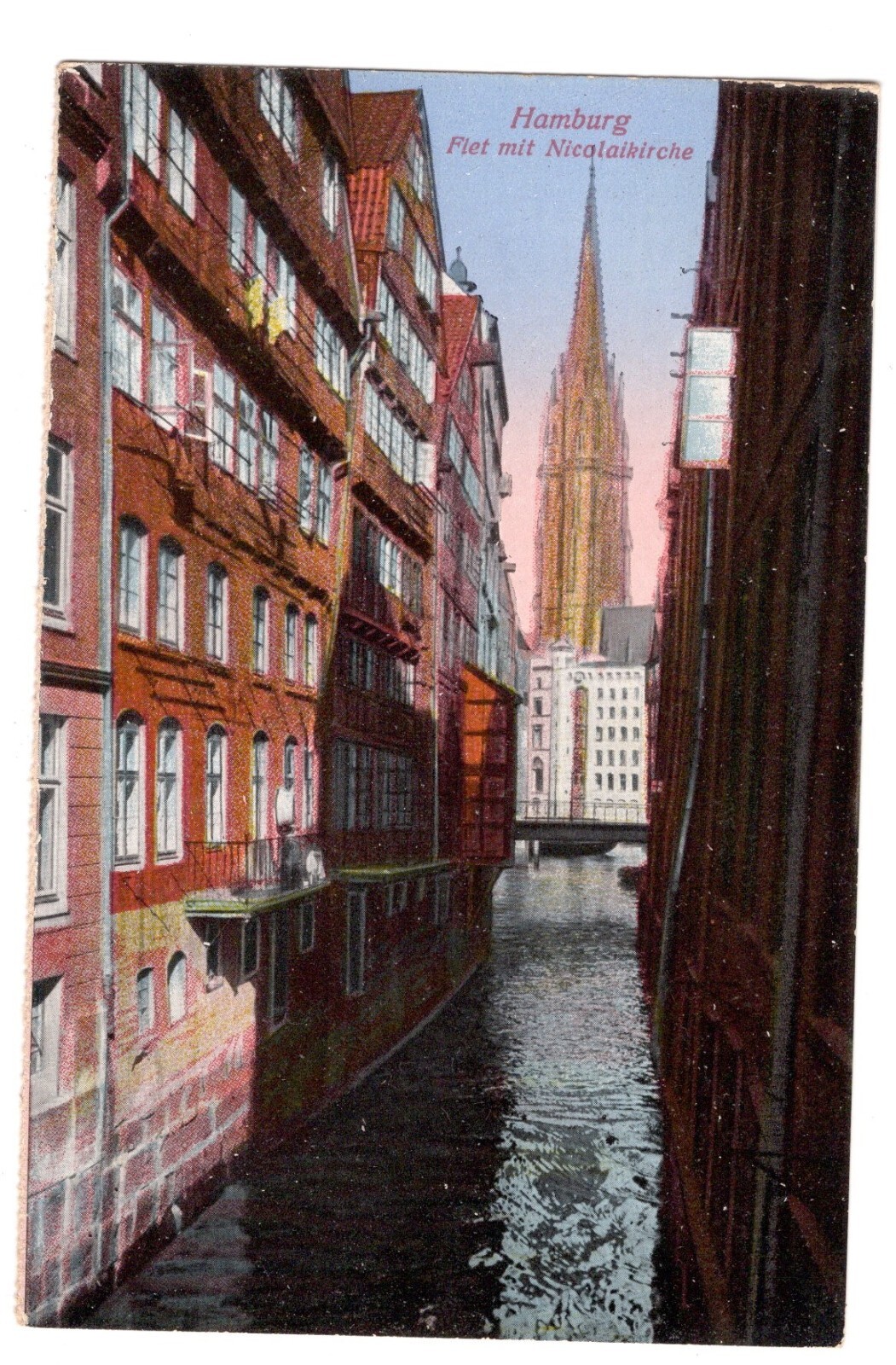 AK, Hamburg, Flet mit Nicolaikirche, Ansichtskarte (S5381)