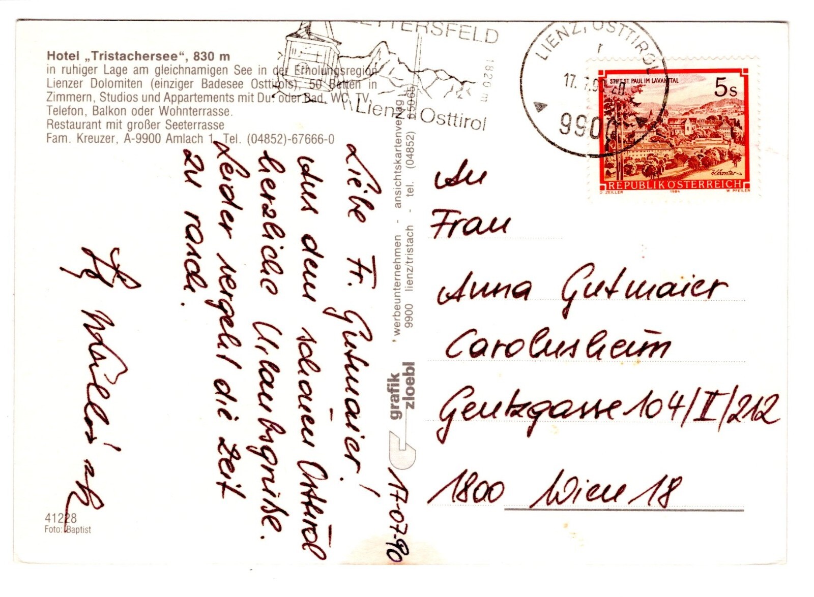 AK, Hotel Tristachersee, Amlach, Tirol, Ansichtskarte (S5760)