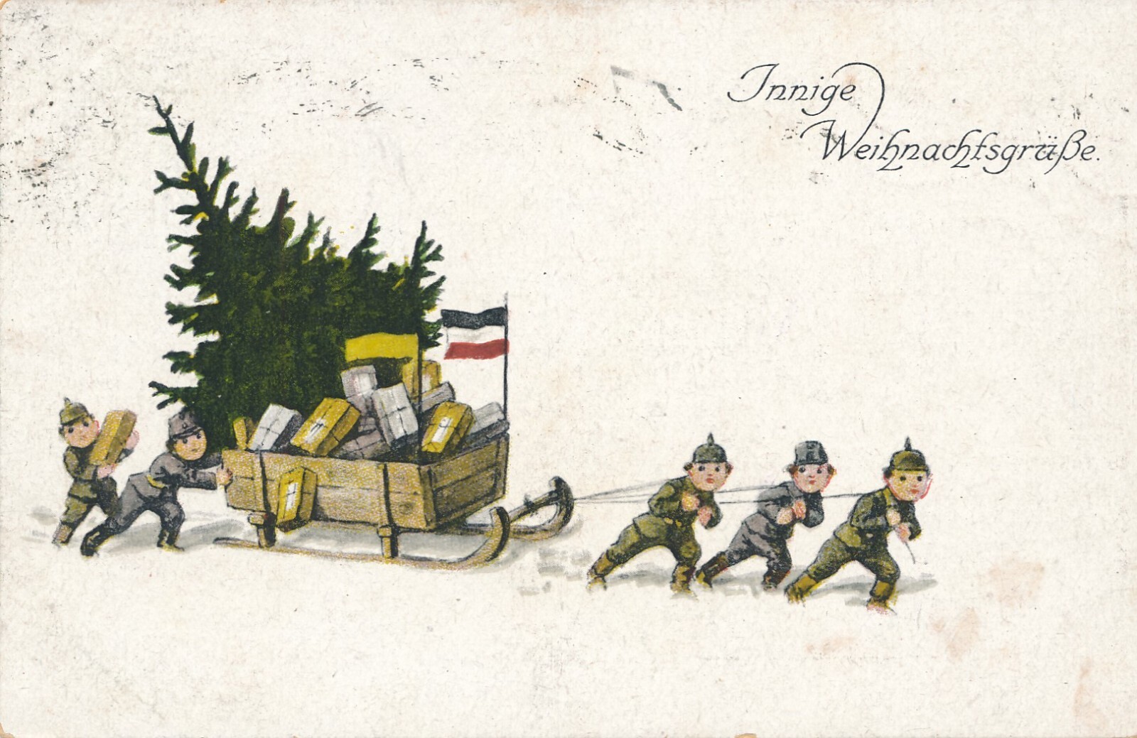 AK, Innige Weihnachtsgrüße, Kinder ziehen Schlitten, Ansichtskarte (S3667)