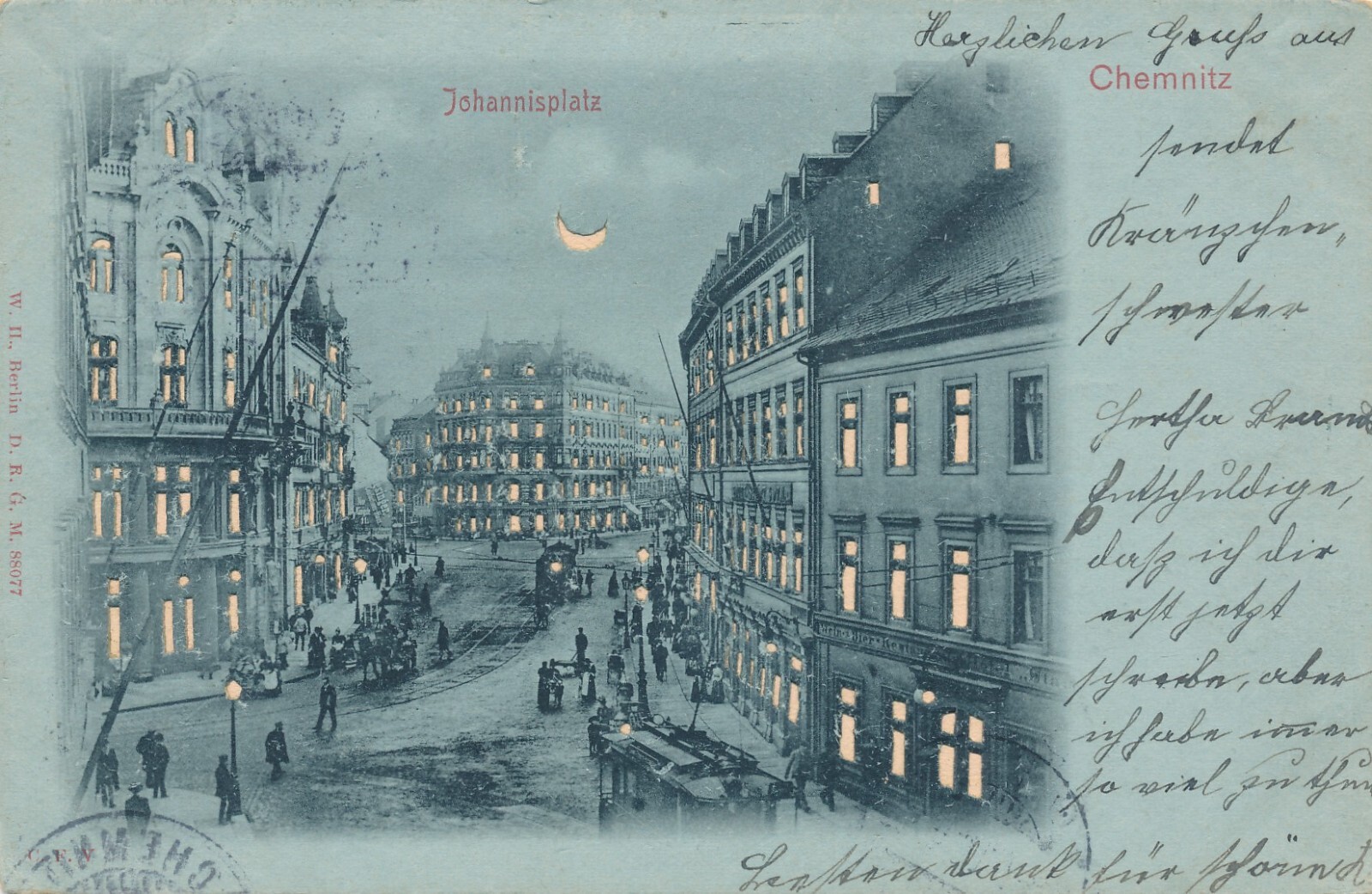 AK, Johannisplatz, Chemnitz, Sachsen, mit leuchtenden Fenster (S190)