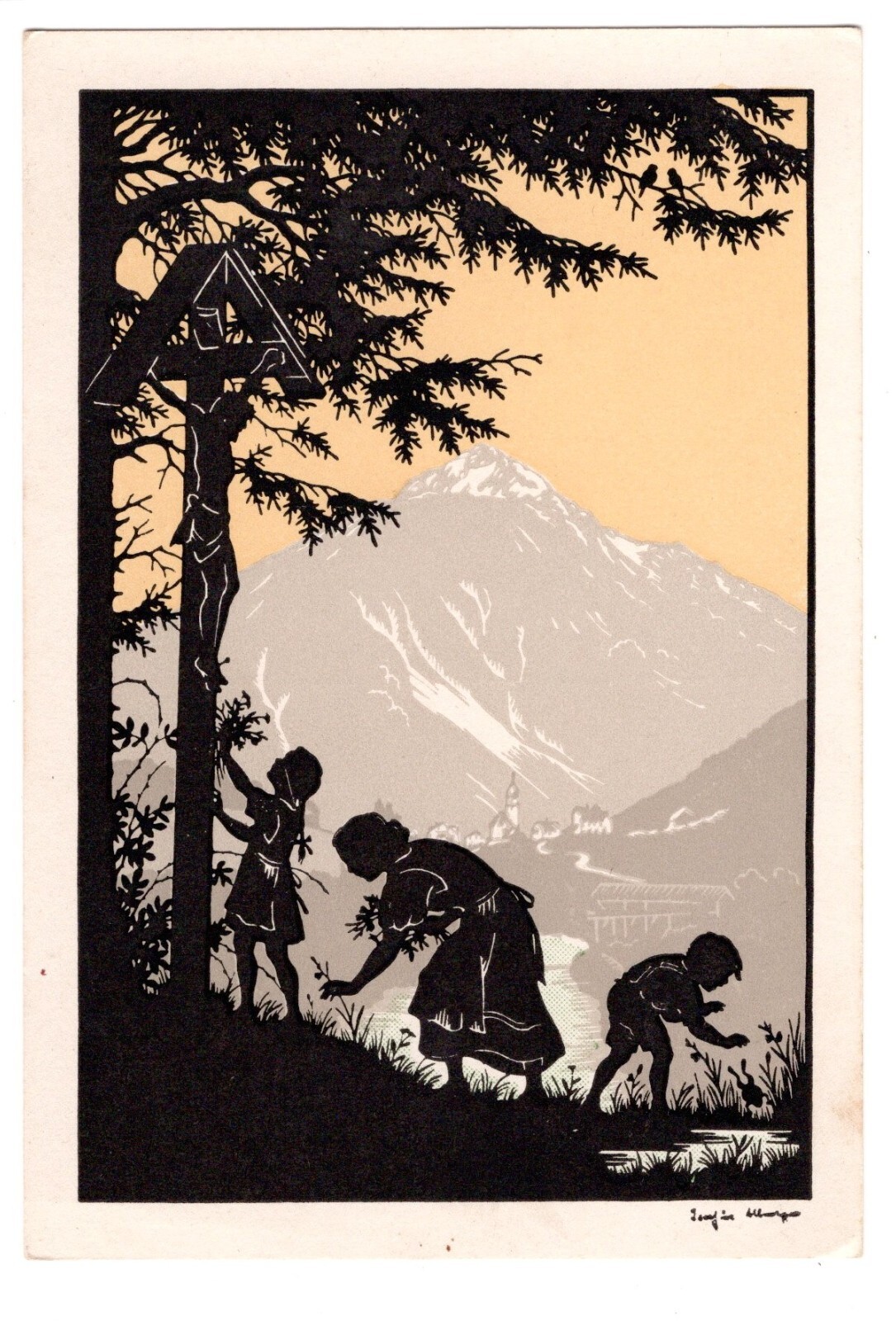 AK, Josefine Allmayer, zwei Kinder und Frau, Ansichtskarte (S5066)