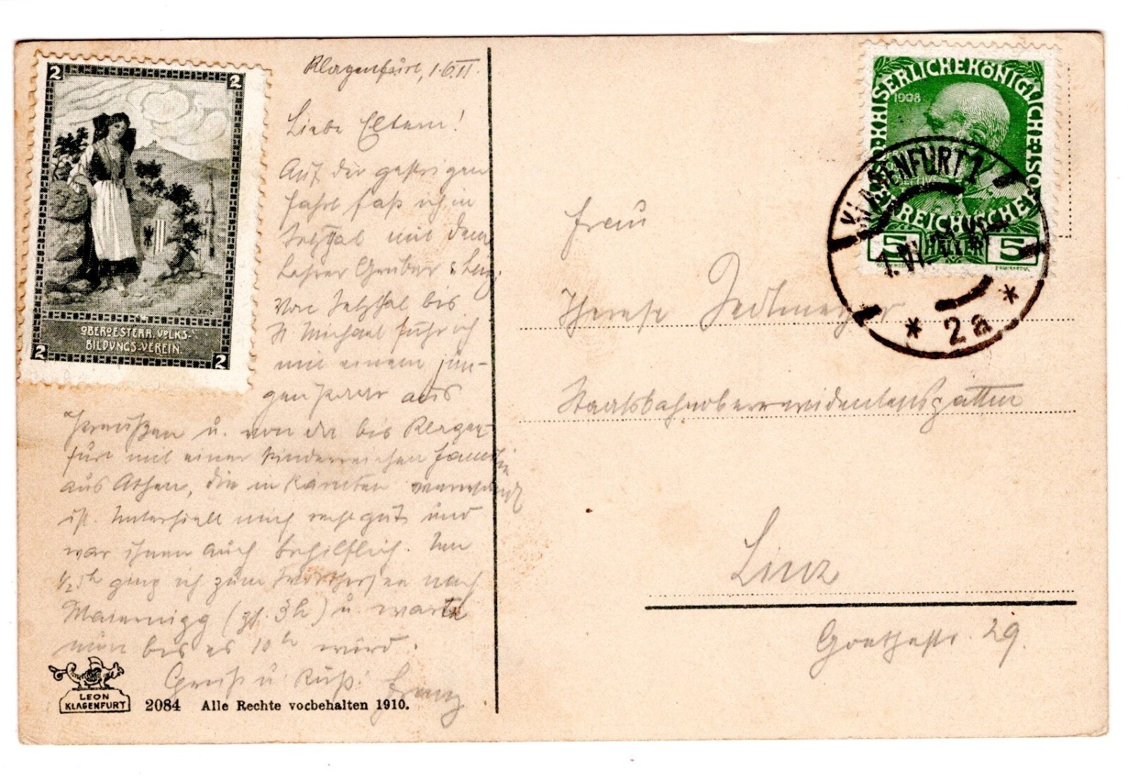2 Kreuzer Ganzsachen - Karte 1892 aus Smichow Stadt (10443)