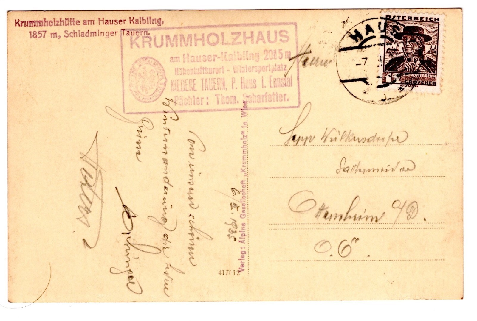 AK, Krummholzhütte am Hauer Kalbling, Steiermark, Ansichtskarte (S4985)