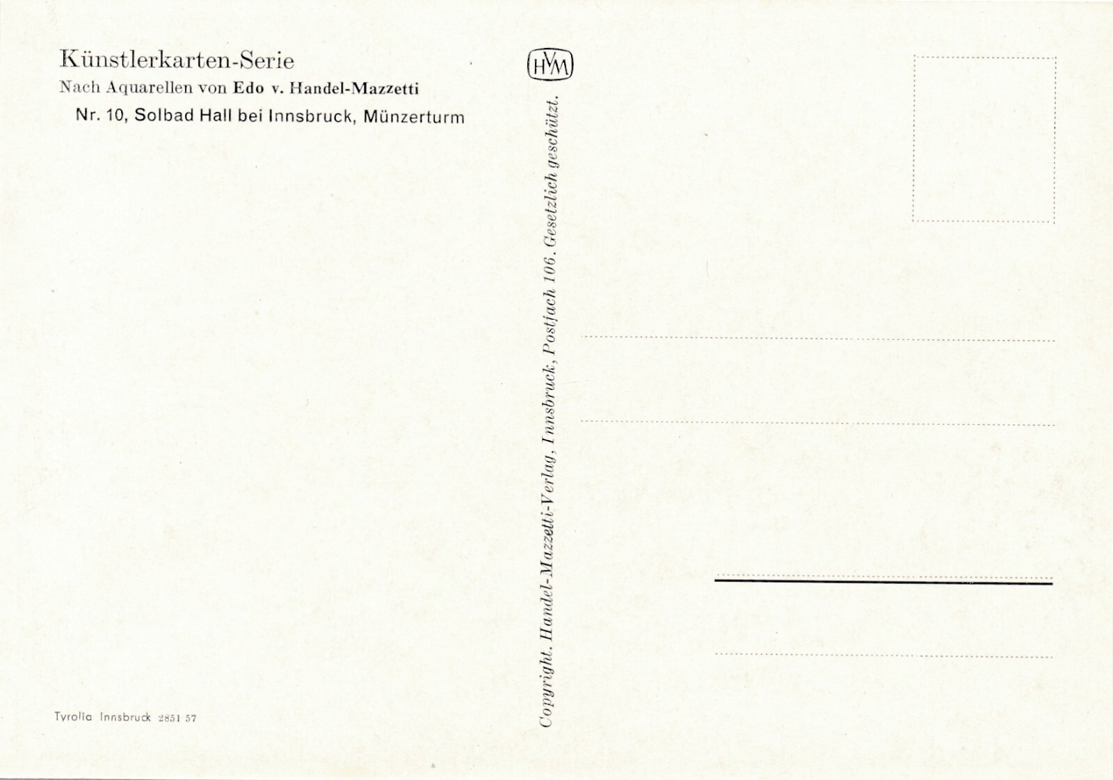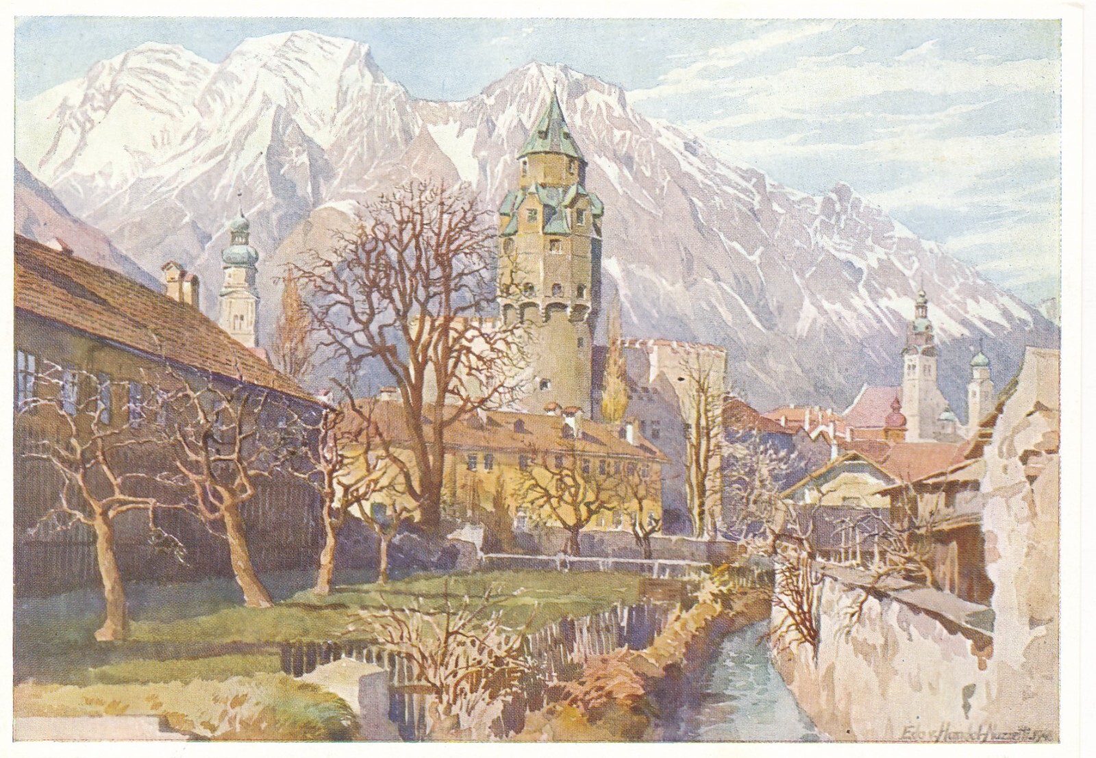 AK Künstlerserie aus Sollbad hall bei Innsbruck Münzerturm Ansichtskarte (11778)