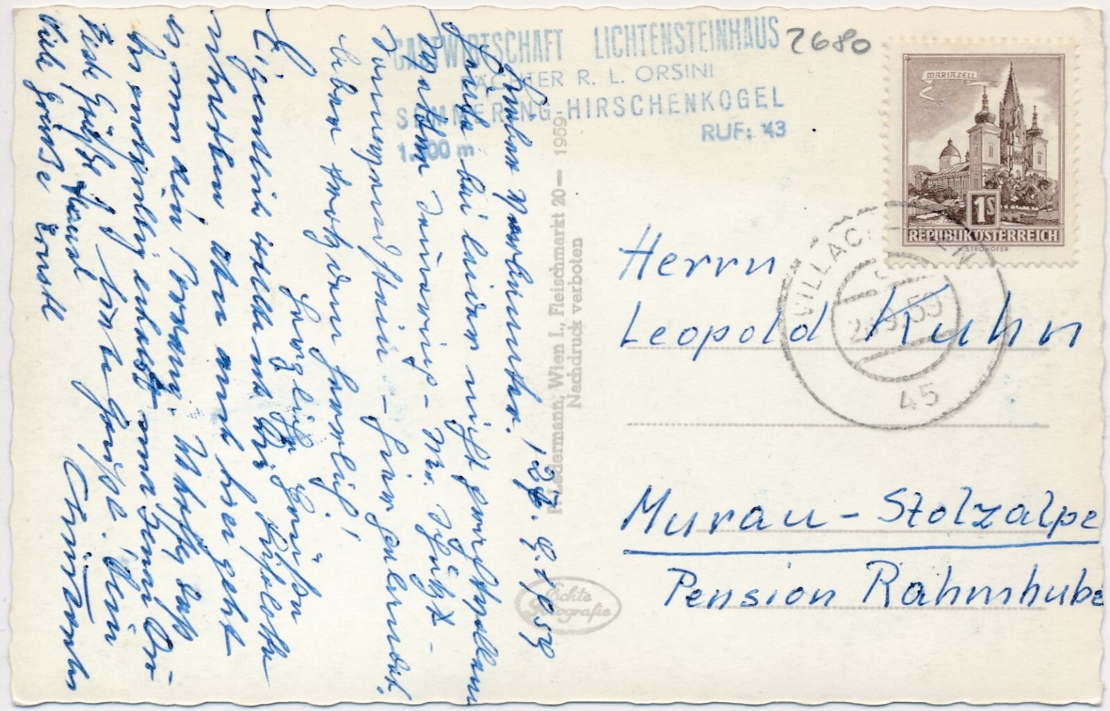 AK, Liechtensteinhaus am Hirschenkogel, Semmering, Niederösterreich (S415)