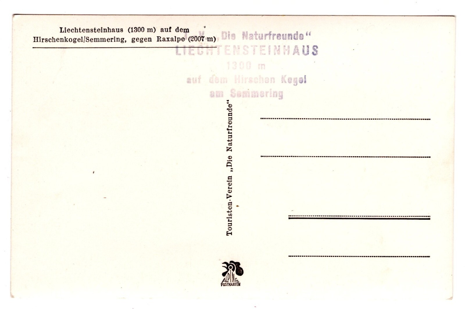 AK, Liechtensteinhaus auf dem Hirschenkogel, Ansichtskarte (S6072)