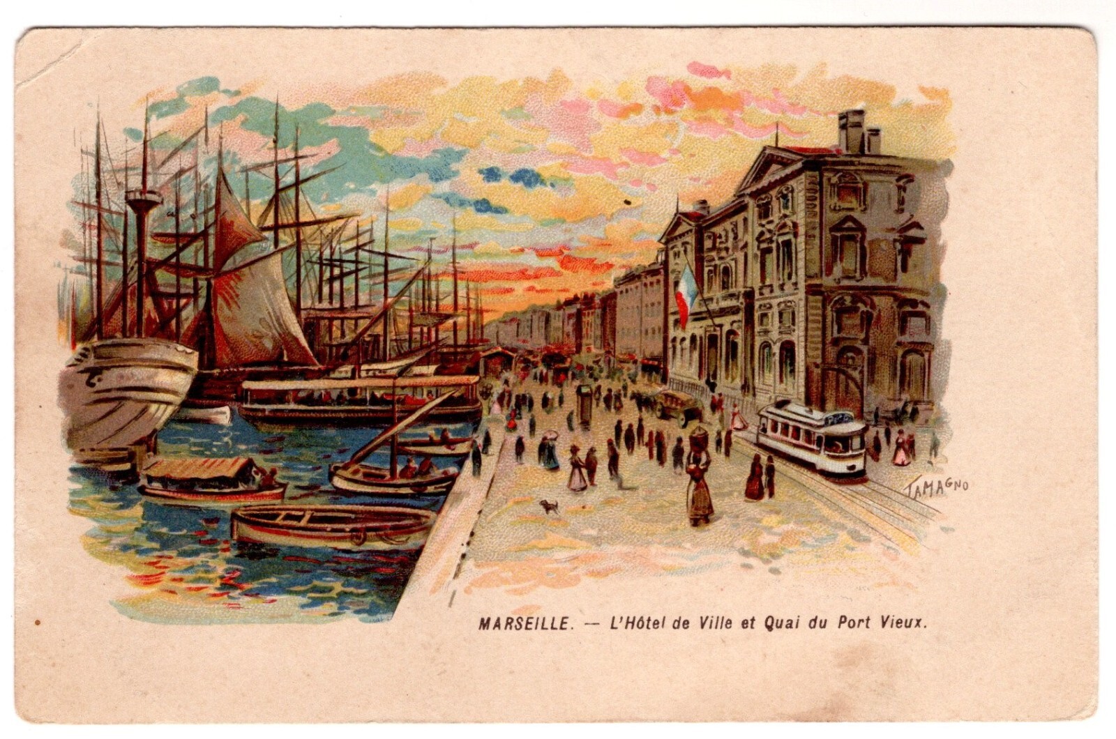 AK, Marseille, L'Hotel de Ville et Quai, Frankreich, Ansichtskarte (S7390)