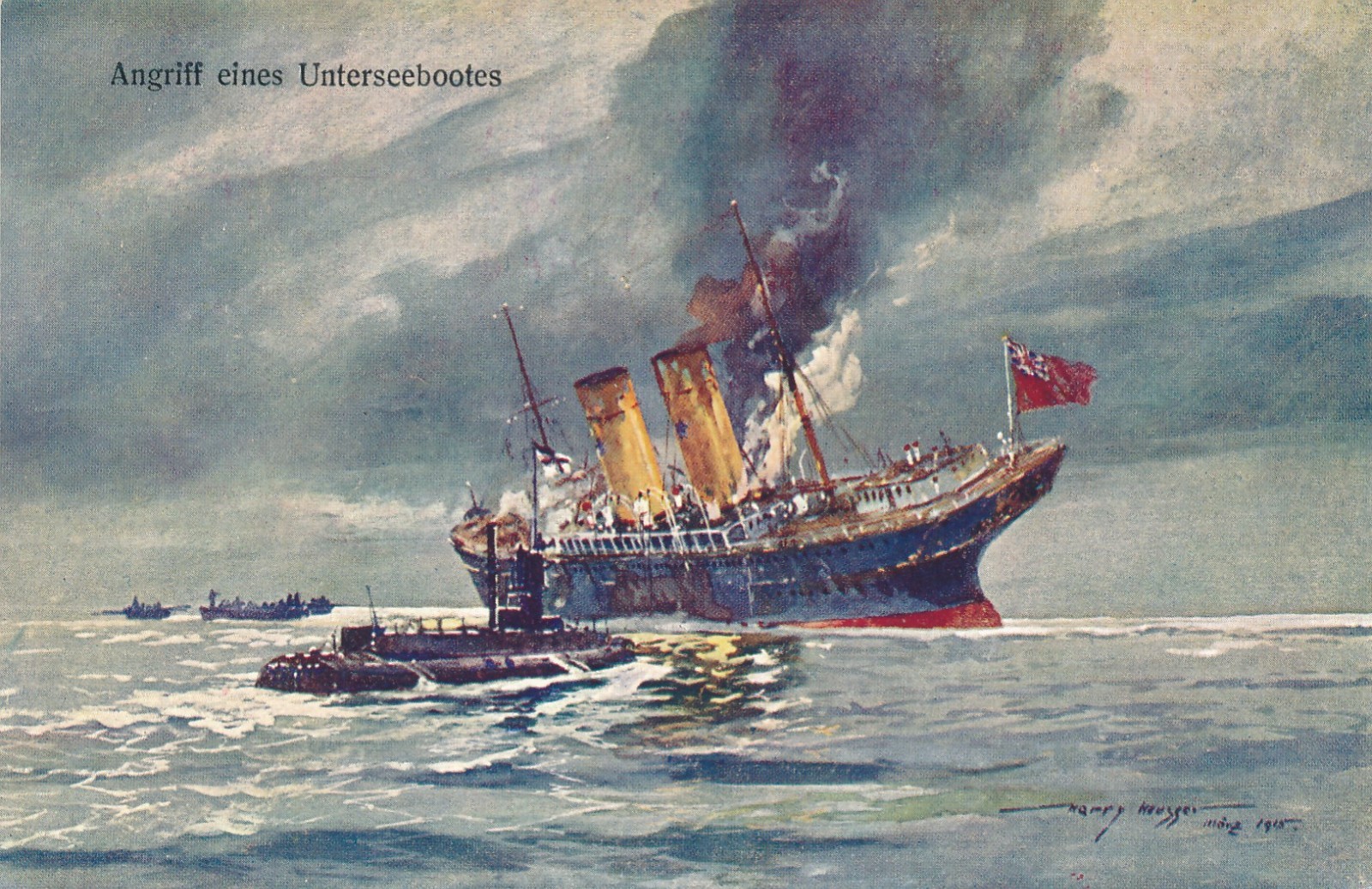 AK Militaria Angriff eines Unterseebootes Ansichtskarte (16987)